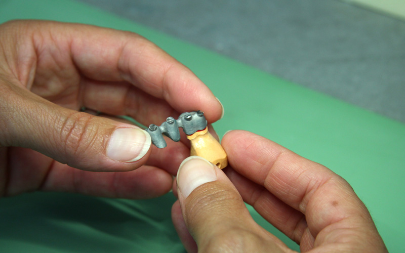 In unserem Labor bearbeiten wir sämtliche Materialien und Versorgungen wie z. B. Gold, NEM, Kunststoff, Wachs, Sintermetall, Chrom-Kobalt-Legierungen, Zirkon, Titan, Schicht- und Presskeramik und Komposit.